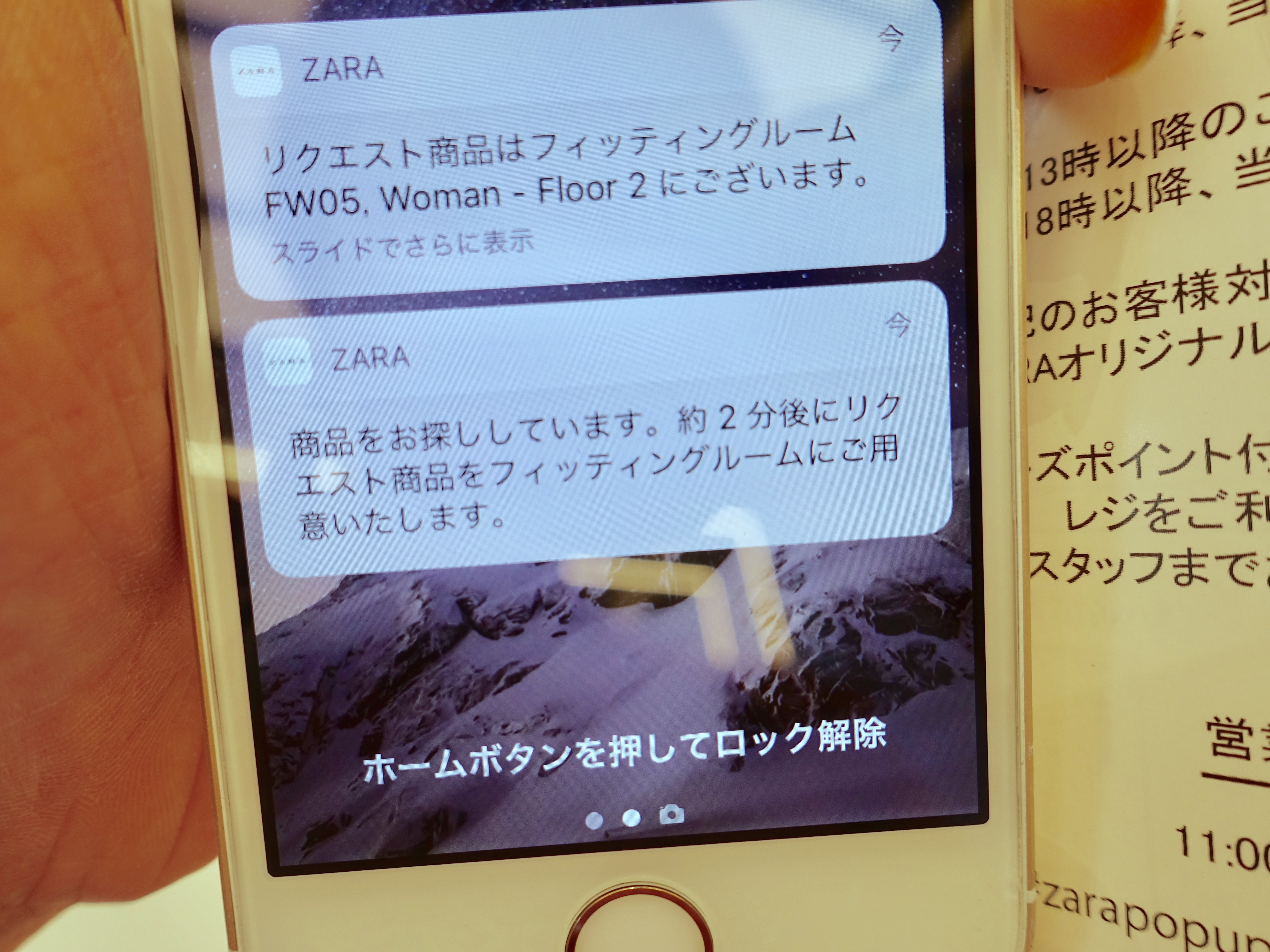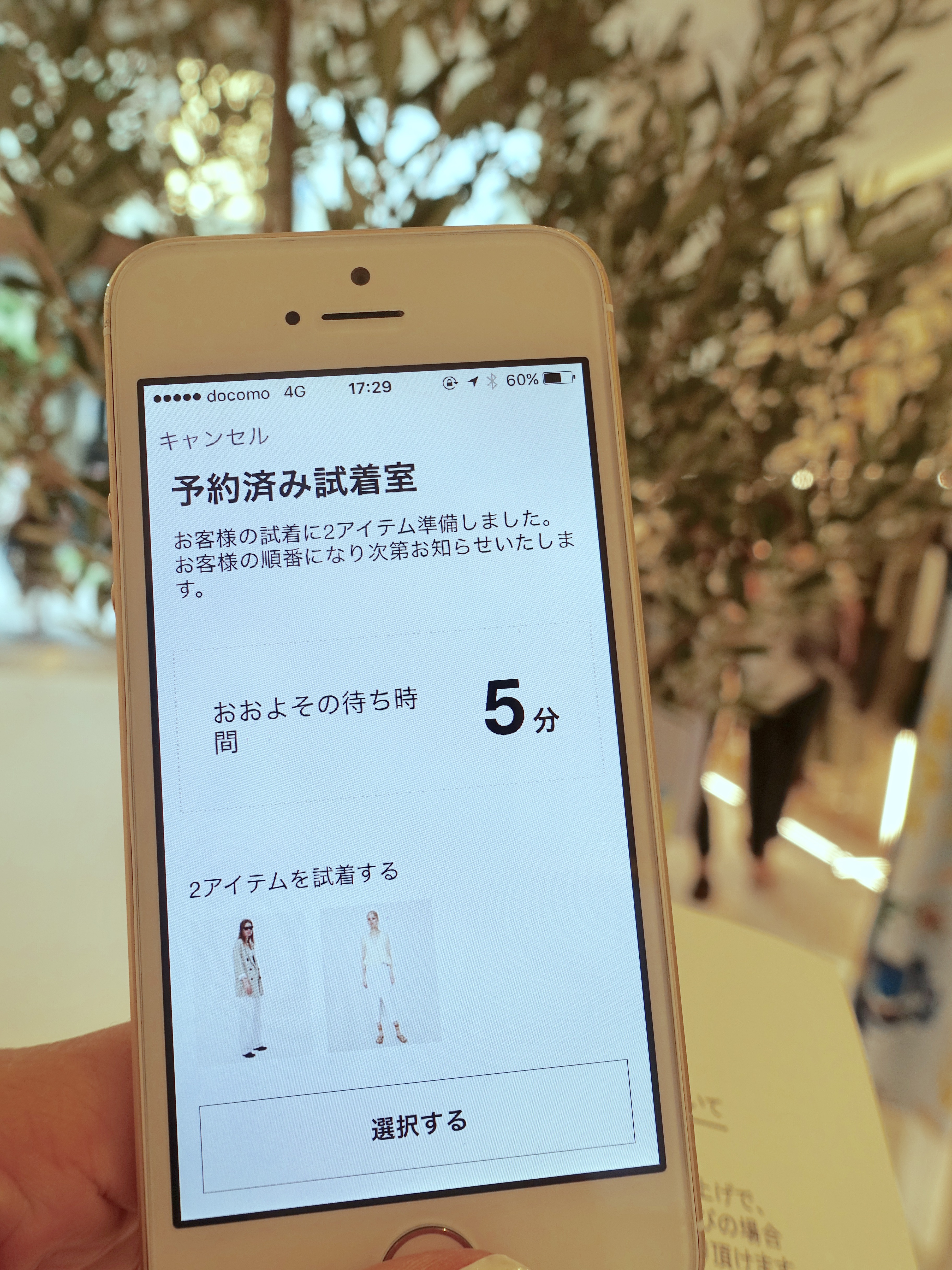 すると「商品をお探ししています〇分後にリクエスト商品をフィッティングルームにご用意いたします」との表示が・・・!